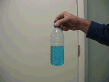- Next, fill the bottle with water and fasten the top on securely. As in the step above, practice flipping the bottle so that you can catch it easily and consistently after one and one-quarter rotations, as shown in the next video clip. Observe any differences between this and what you experienced when flipping the empty bottle in Step 2.