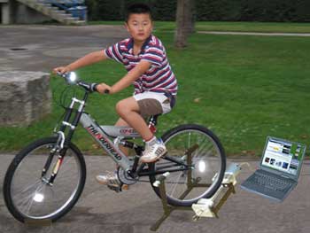 Sami comes from a remote village without electricity. The last time he returned home for vacation, he brought his laptop computer with him. Sami also loves to ride his bike. His cousin is a clever electrician, so Sami wants to know if he can rig up a generator for his bike that would provide enough power for him to use his laptop computer. The generator and bicycle would have to be mounted on a stationary stand so that all the pedal power would go to generating electricity.