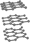 It may therefore be surprising to realise that this element, which forms more chemical compounds with a few other elements (i.e. hydrogen, oxygen, nitrogen) than all the 100 or so elements combined, exists in only two pure forms: diamond and graphite. In diamond every atom is surrounded by four other carbons, forming a three-dimensional network, whereas in graphite every carbon bonds with three neighbouring atoms in a plane, leading to a chicken-wire like sheet. These graphitic sheets are loosely coupled with one another and slide easily, giving it a soft texture.