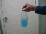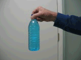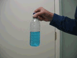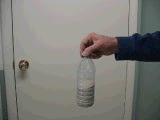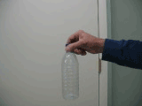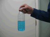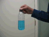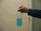 - Next, fill the bottle with water and fasten the top on securely. As in the step above, practice flipping the bottle so that you can catch it easily and consistently after one and one-quarter rotations, as shown in the next video clip. Observe any differences between this and what you experienced when flipping the empty bottle in Step 2.