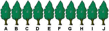 Let's assume we arrange the trees in a "single" ten-tree row: