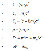 - Solving problems involving relativistic energy and momentum conservation in collisions and particle decays
