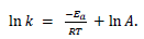 • Analysing graphical representation of the Arrhenius equation in its linear form