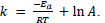 • A graph of 1/T against ln k is a linear plot with gradient – Ea / R and intercept, lnA.