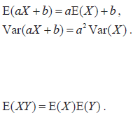 • Proof that ρ = 0 in the case of independence and ±1 in the case of a linear relationship between X and Y.