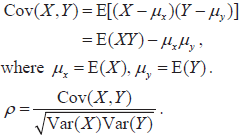 • The use of ρ as a measure of association between X and Y, with values near 0 indicating a weak association and values near +1 or near –1 indicating a strong association.