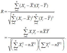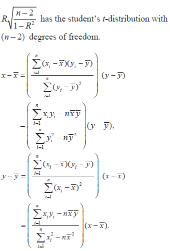 • Definition of the (sample) product moment correlation coefficient R in terms of n paired observations on X and Y. Its application to the estimation of ρ.